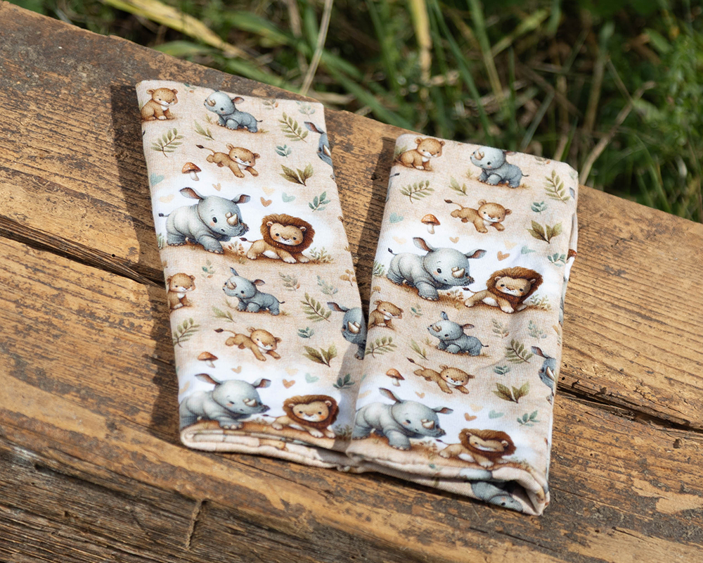 Farbe: Beige mit Nashorn und Löwe
